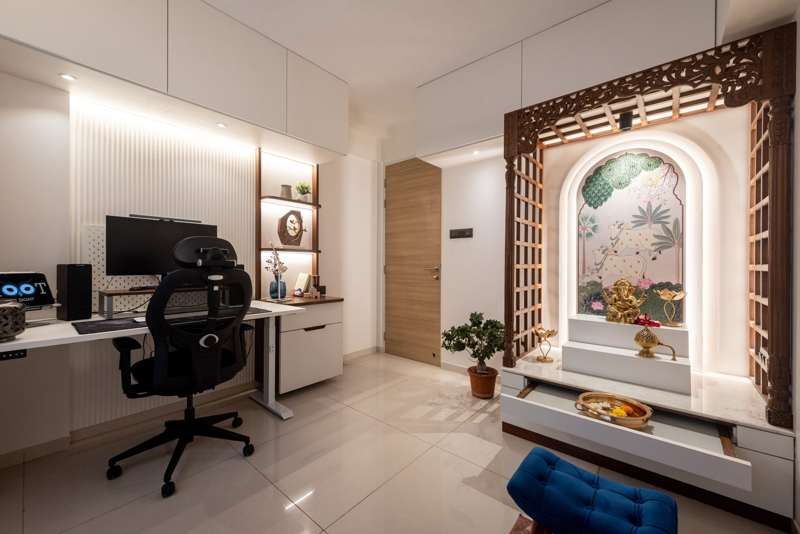 We believe that, “Every space has a story to tell, and our job is to translate that narrative into a tangible, immersive experience,”. From minimalist urban apartments our designs are embracing a fusion of the old and the new The modern Indian interiors for this residence at KALPATARU JADE, BANER showcases a harmonious blend of modern elegance and functional living. The design was carefully crafted to meet the specific needs of the homeowners, creating spaces that are both aesthetically pleasing and highly functional.